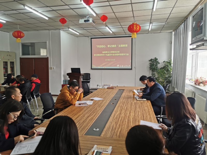 本网讯(通讯员宋海娇)11月6日,88038威尼斯检测中心党总支在学院资料室开展“不忘初心,牢记使命”主题教育,专题学习党的十九届四中全会精神。会议由党总支书记朱兴国主持,全院教师参加学习。